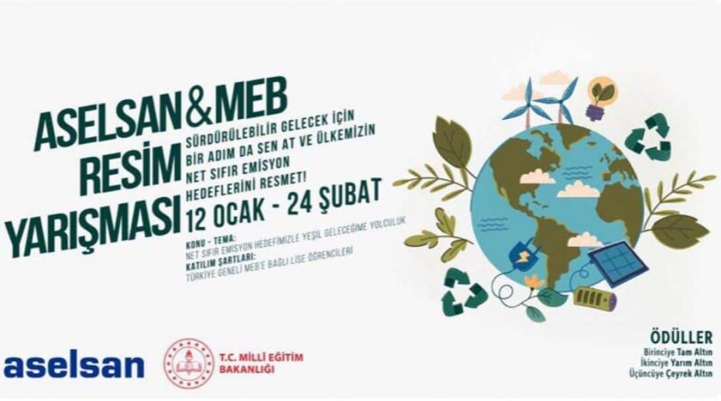 ASELSAN Elektronik Sanayi ve Ticaret A.Ş. ve Millî Eğitim Bakanlığı Ortaöğretim Genel Müdürlüğü iş birliğinde lise öğrencilerini temiz, sürdürülebilir ve çevreci bir gelecek hayal etmeleri konusunda heveslendirmek amacıyla öğrencilerin ülkemizin 2053 yılı net sıfır emisyon hedefi kapsamında çevrenin korunması ile ilgili yapılabilecek çalışmaların neler olabileceği, iklim değişikliğine neden olan karbon emisyonlarının nasıl azaltılabileceği konusundaki düşüncelerini ve / veya bu konular çerçevesindeki gelecek hayallerini anlatabilecekleri “Net Sıfır Emisyon Hedefimizle Yeşil Geleceğime Yolculuk” temalı iş bu resim yarışması düzenlenmiştir.