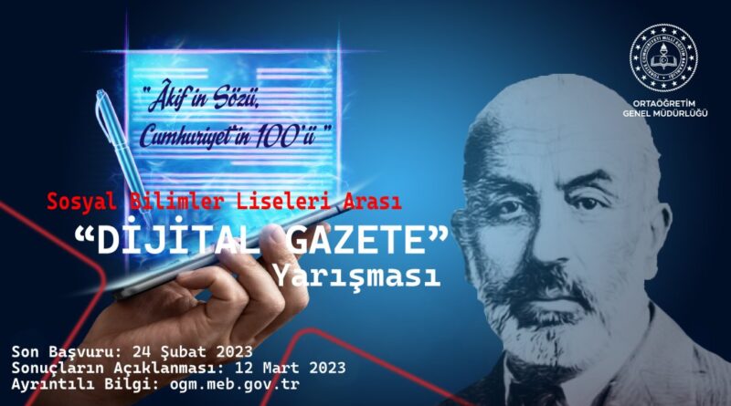 Genel Müdürlüğümüzce gerçekleştirilen “Âkif ‘in Sözü, Cumhuriyetin 100” ü Temalı Dijital Gazete Yarışması’na sosyal bilimler liselerinden çok sayıda eser gönderildi. Yarışma şartnamesi doğrultusunda yapılan değerlendirmede;